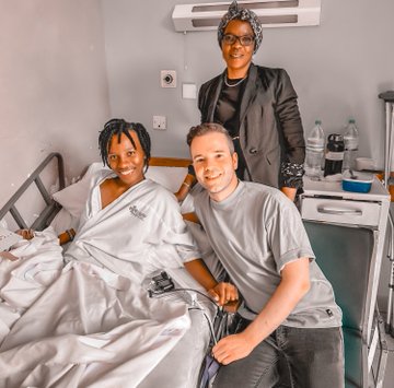 Diana and her mother with volunteer, Pablo Ortega