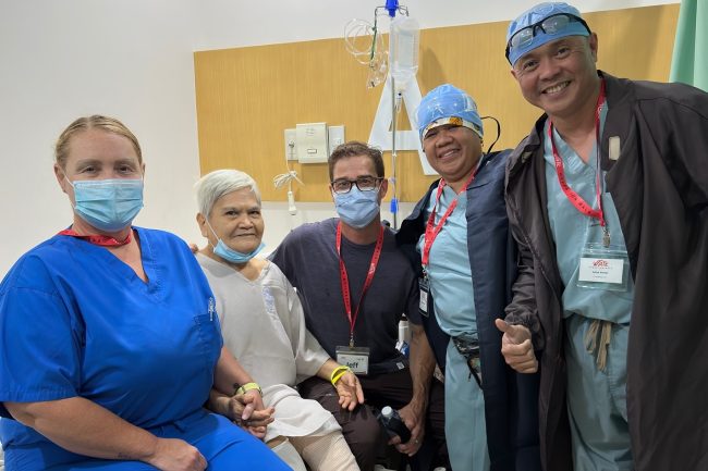 June 18, 2025 paullenk Michelle Riley PA, Dr. Jeff Parks, Hardie Roz Griffin, and Julius Veloso visit their patient after surgery