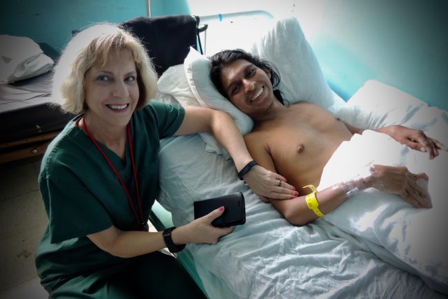 RN Cindy Gilbert with patient Juan Diaz