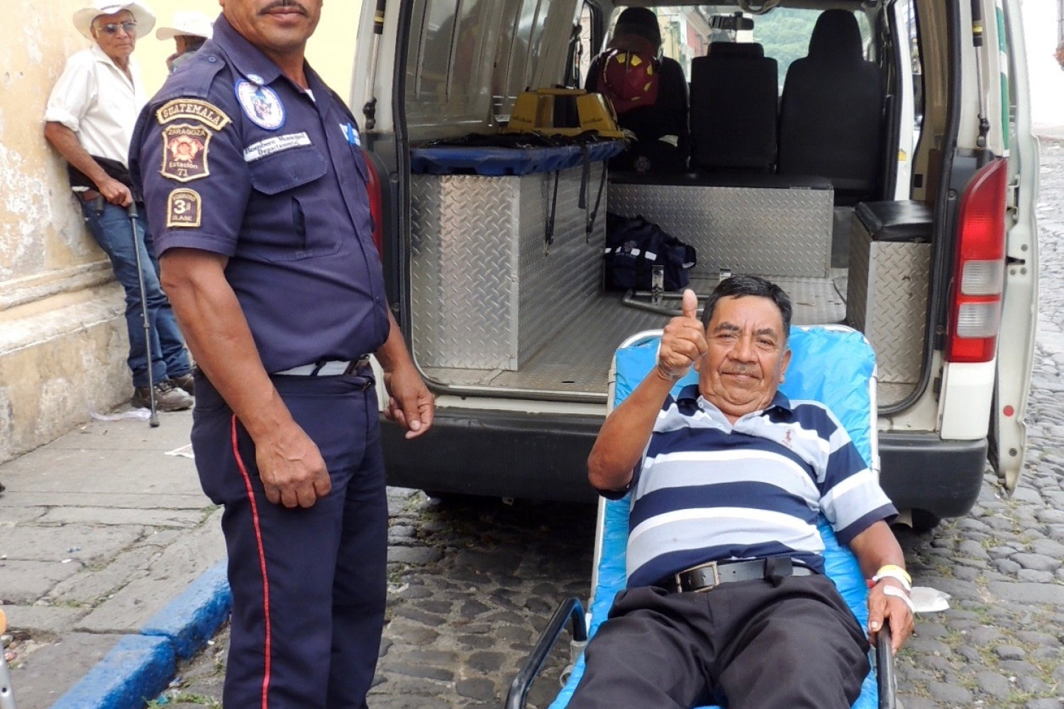 His wife was very worried about the tole that the long journey would take on Caterino and mentioned his situation to their local fire department. The “bombaderos” agreed to make the journey into Antigua and bring him home in the ambulance so he would be more comfortable and at a fraction of the cost of the bus ride.